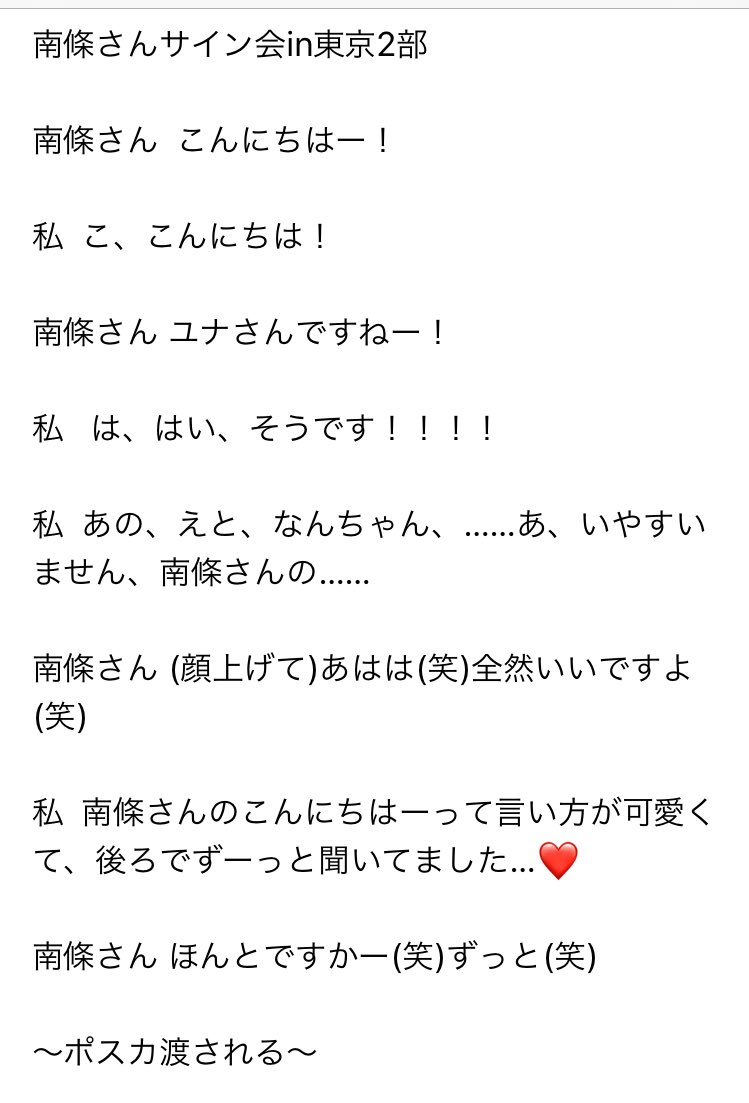 ユナ 南條さんサイン会in名古屋 終わったあぁああ まさかの最後から2番目 笑 今までの接近よりめちゃくちゃ長く話せた 南條愛乃さんありがとうございます